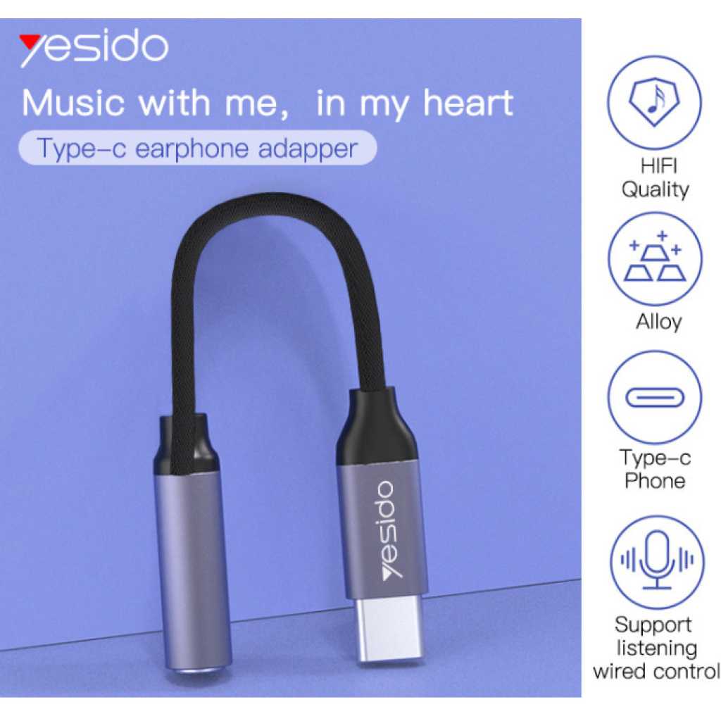 Key Features: High-Quality Audio Conversion: The Yesido YAU19 Type-C to 3.5mm Audio Adapter Cable ensures high-fidelity audio conversion, preserving the original sound quality of your music, videos, and calls. Durable Construction: Crafted with premium materials, including a sturdy Type-C connector and a reinforced 3.5mm audio jack, this adapter cable is built to withstand daily use and provide long-lasting performance. Universal Compatibility: Designed to work seamlessly with a wide range of devices, including smartphones, tablets, laptops, and more, Sleek and Compact Design: With its sleek and compact design, this adapter cable is highly portable, making it convenient to carry with you wherever you go. Whether you’re traveling Plug-and-Play Convenience: The Yesido YAU19 adapter cable offers plug-and-play convenience, allowing you to connect your Type-C device to any standard 3.5mm audio device instantly.