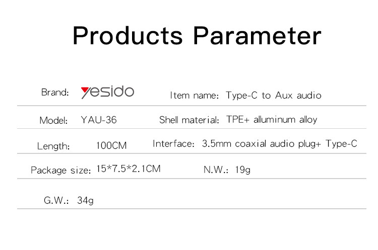 YAU36 Type-C To 3.5MM Plug Audio Cable