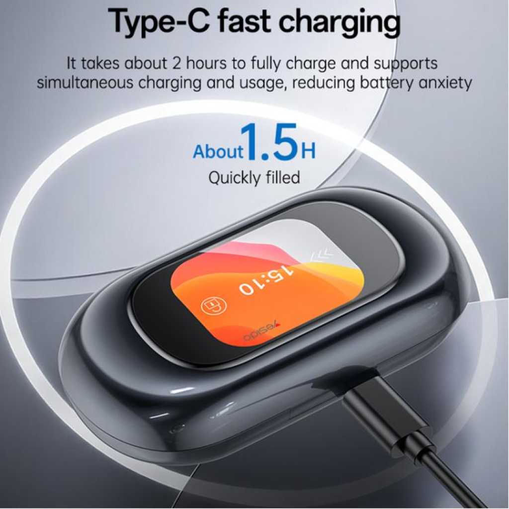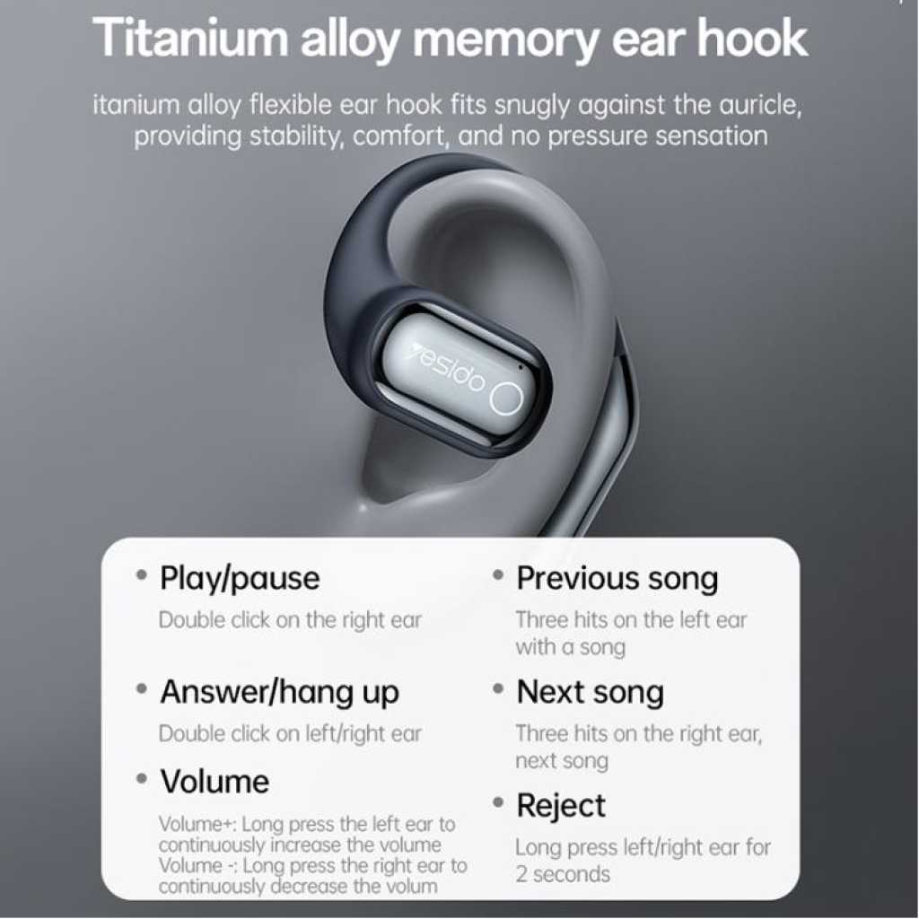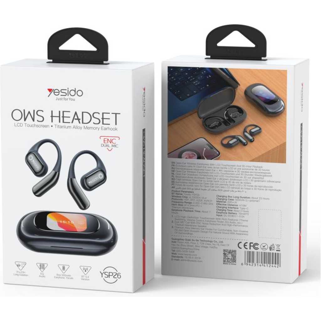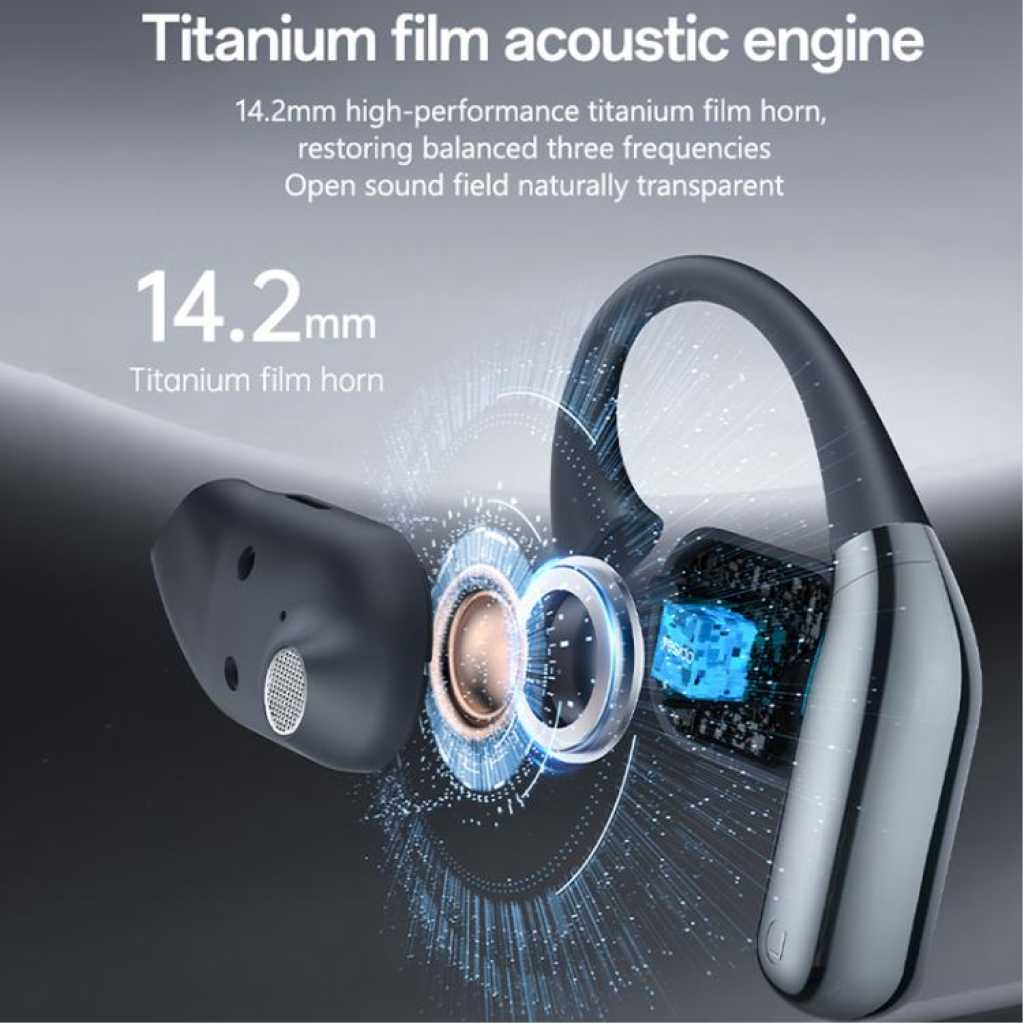 Key Features: 1. High-performance ultra-linear driver unit with titanium diaphragm speaker delivers exceptional sound quality, comfortable and effortless listening, allowing you to enjoy HiFi-quality sound. 2. Bluetooth 5.4 for lower latency, more stable signal, directional narrow-band sound transmission, and high privacy protection. 4. Built-in flexible memory titanium alloy wire adapts to different ear shapes, providing a secure and comfortable fit, as if custom-made. 5. Open acoustic design restores a wide, natural sound field, allowing you to enjoy music and feel safe at the same time. 6. Ultra-long battery life: 7-8 hours of playback on a single full charge, and approximately 32 hours of continuous music playback with the charging case. 7. Versatile LCD display with features including theme switching, volume control, headphone search, and audio EQ.
